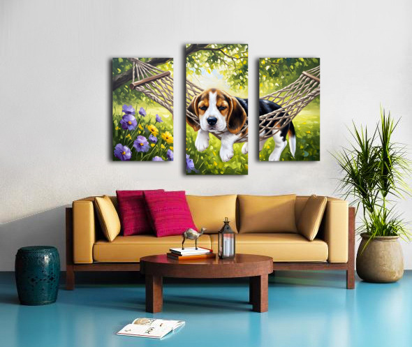 Beagle Puppy Discovers Perfect Hammock Spot Canvas print