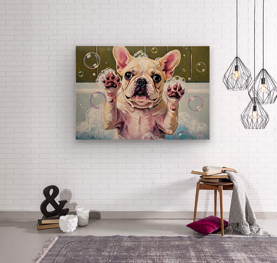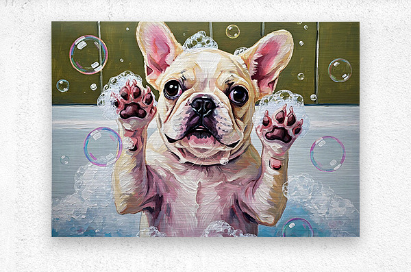 ABOUT THIS ARTWORK: FRENCH BULLDOG PUPPYS BUBBLE BATH ADVENTURE BEGINS