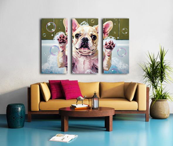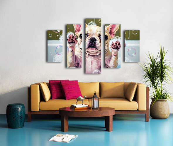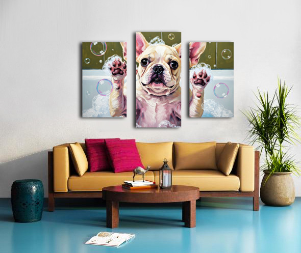 French Bulldog Puppys Bubble Bath Adventure Begins Canvas print
