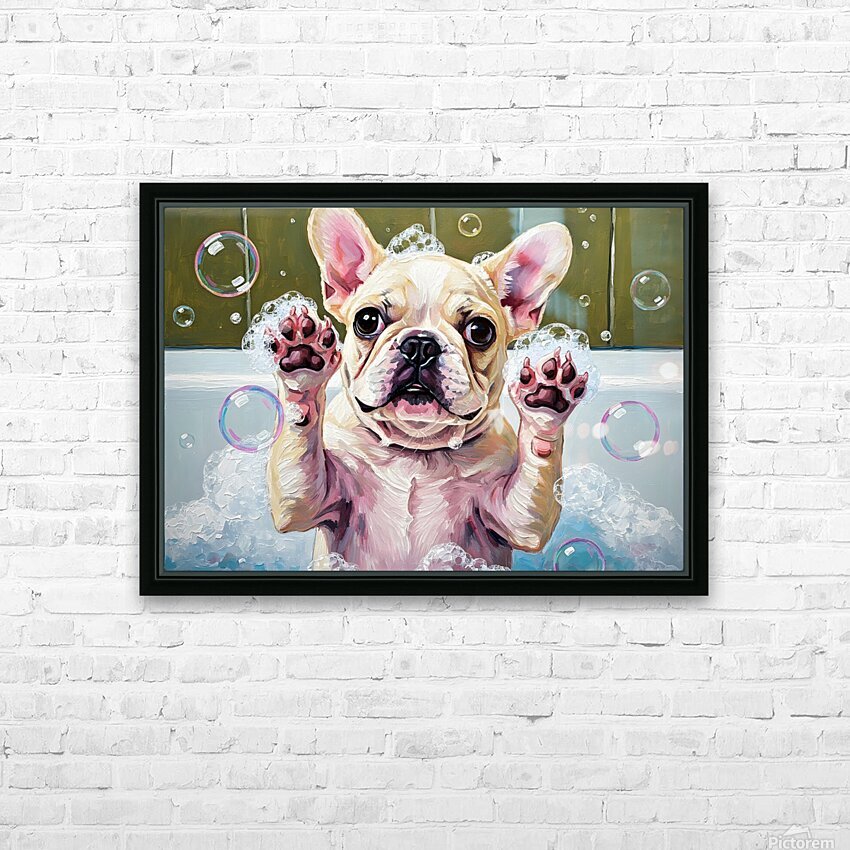 Get this artwork "French Bulldog Puppys Bubble Bath Adventure Begins" in a framed print.