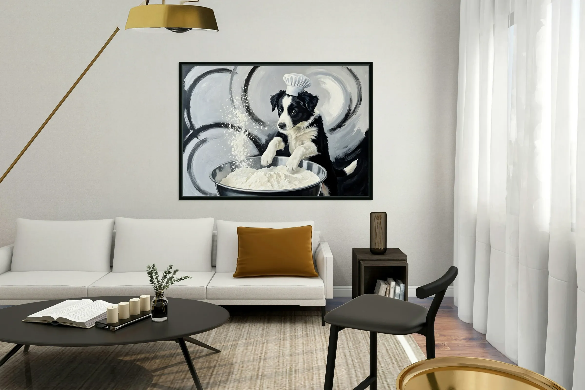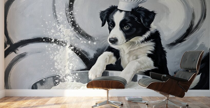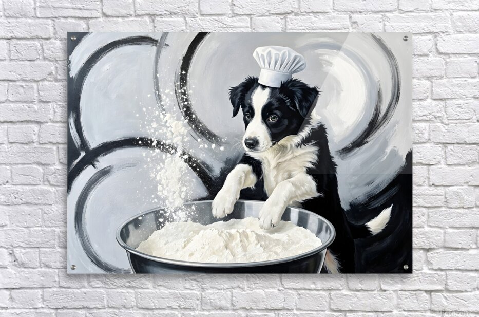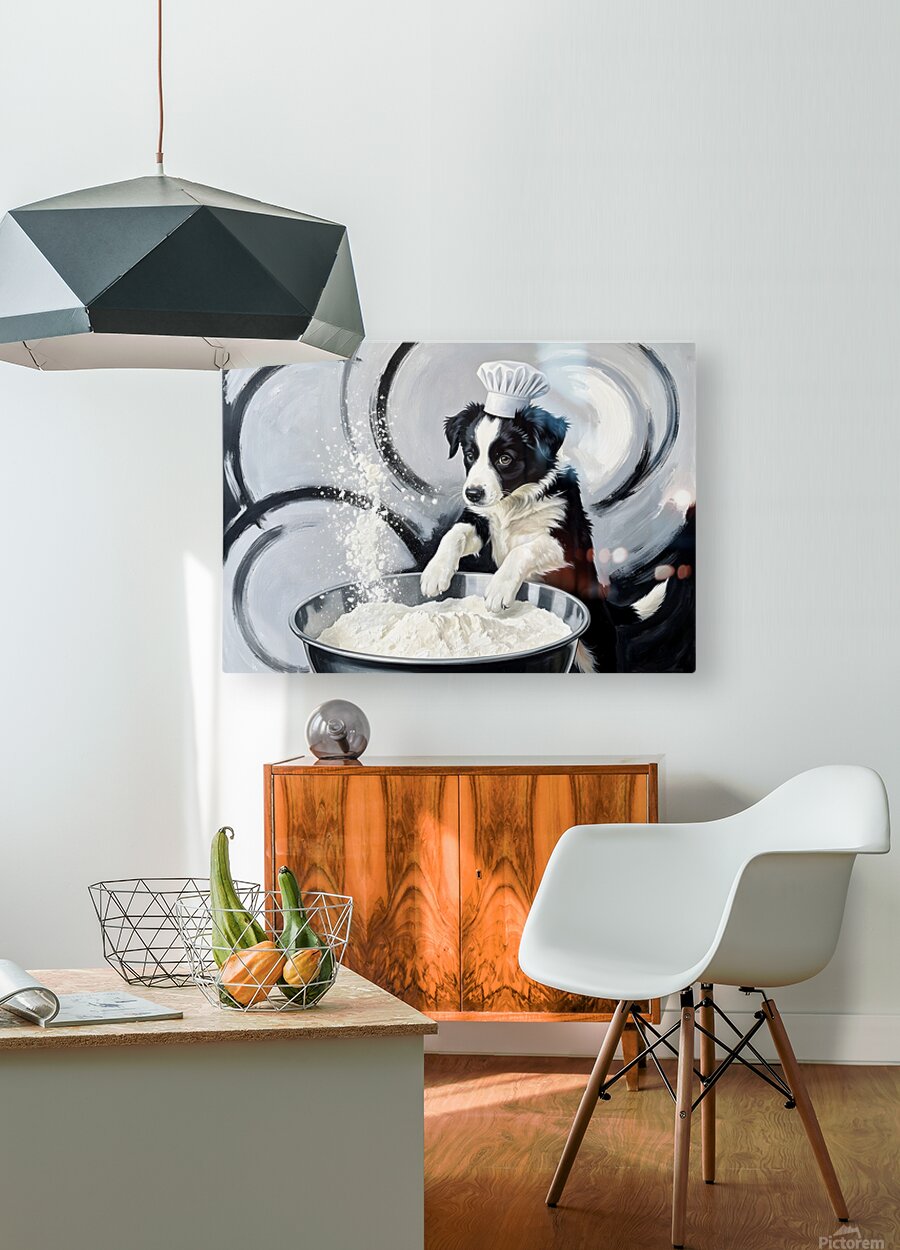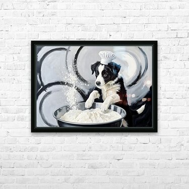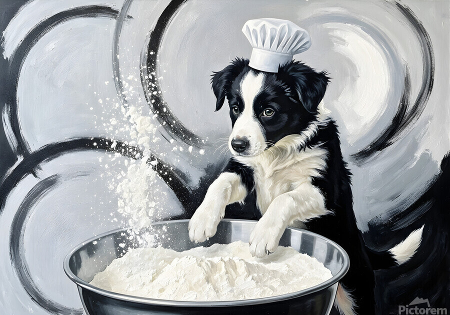 ABOUT THIS ARTWORK: BORDER COLLIE PUPPYS FIRST COOKING ADVENTURE