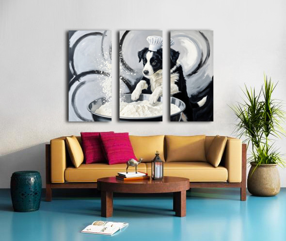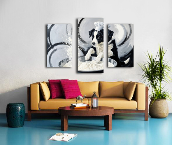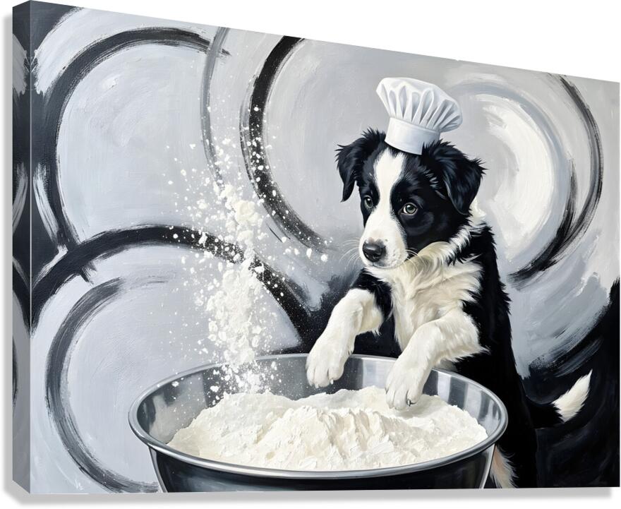 Border Collie Puppys First Cooking Adventure Canvas print