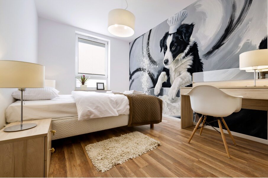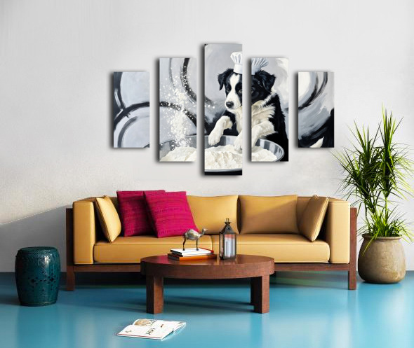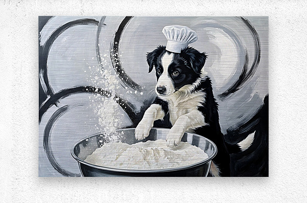 ABOUT THIS ARTWORK: BORDER COLLIE PUPPYS FIRST COOKING ADVENTURE