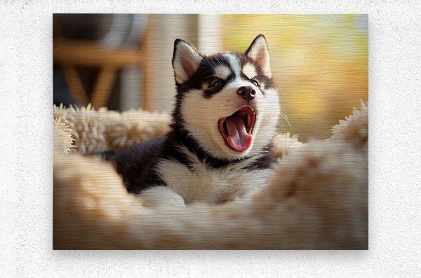 ABOUT THIS ARTWORK: SLEEPY SIBERIAN HUSKY PUPPY DREAMS IN COZY BED