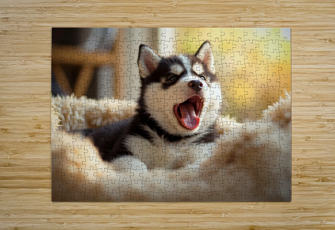 Sleepy Siberian Husky Puppy Dreams In Cozy Bed Puppy Prints Puzzle printing