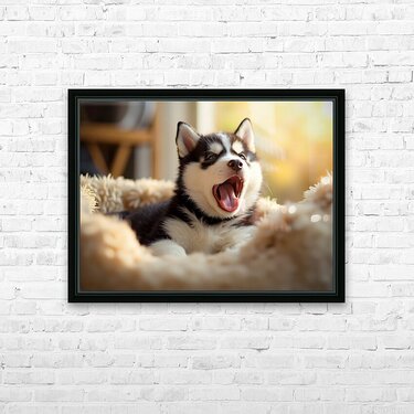 Sleepy Siberian Husky Puppy Dreams In Cozy Bed Picture Frame Printing