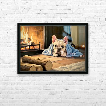 French Bulldog Puppy Happy And Warm After Beach Adventure Frame print