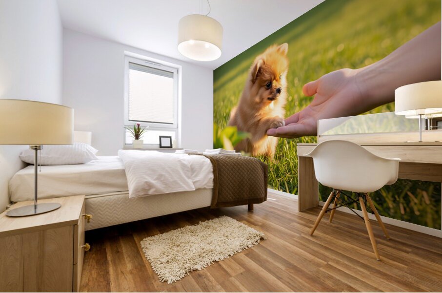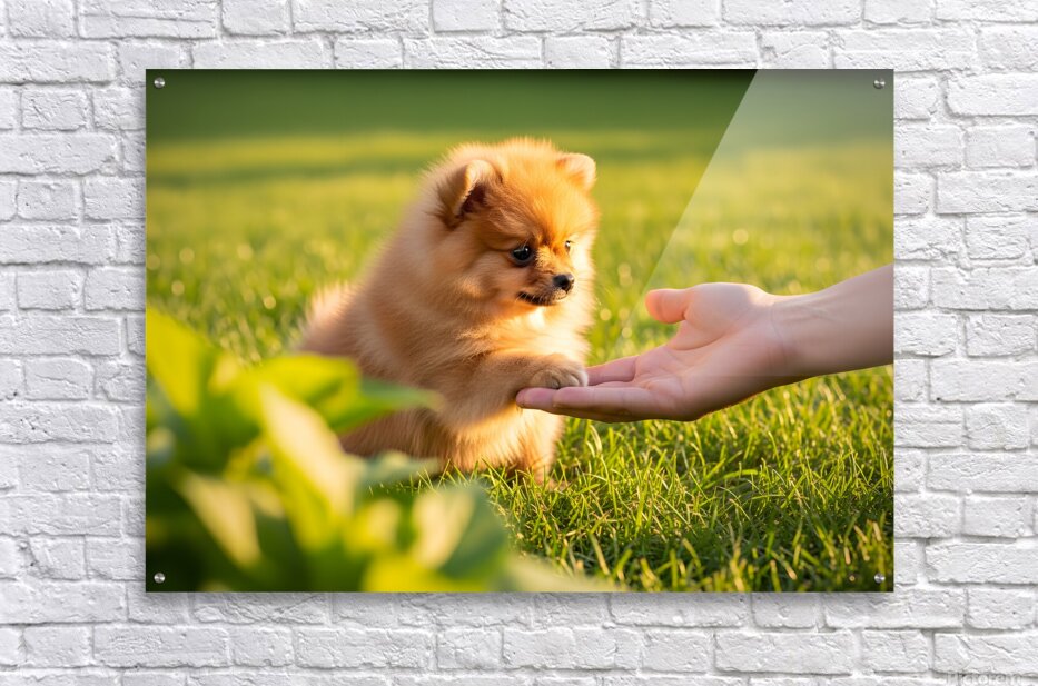 Get this artwork "Happy Pomeranian Puppy After Learning Handshake" in a framed print.