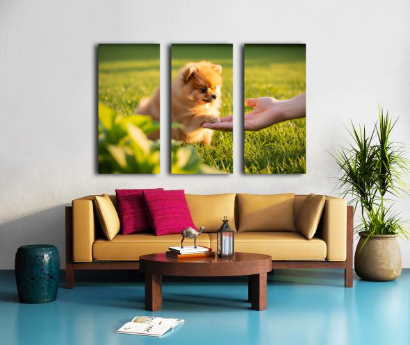 Happy Pomeranian Puppy After Learning Handshake Canvas print