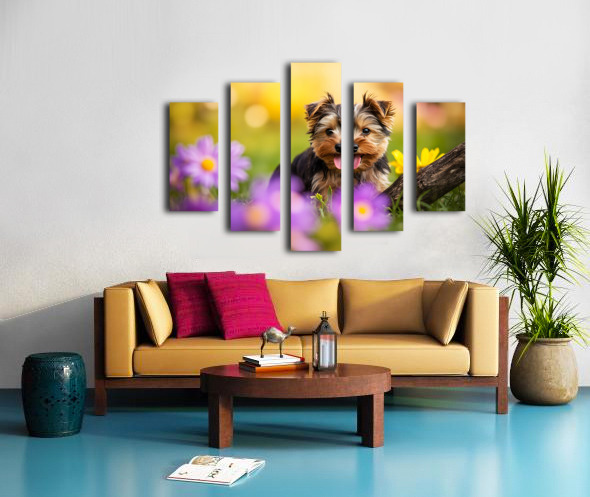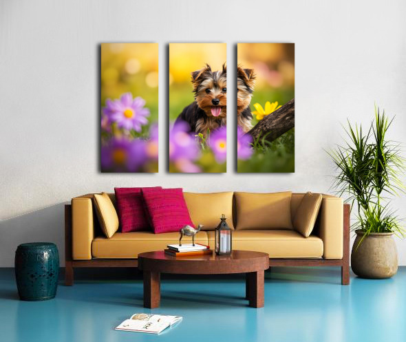 Yorkshire Terrier Puppy Finds Big Stick Adventure Canvas print