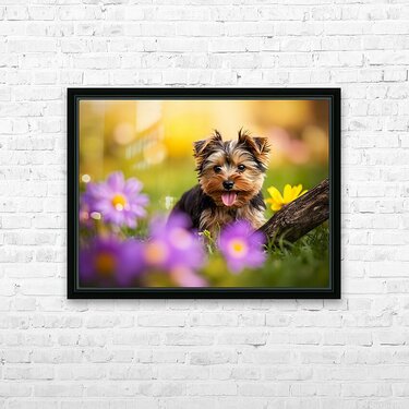 Get this artwork "Yorkshire Terrier Puppy Finds Big Stick Adventure" in a framed print.