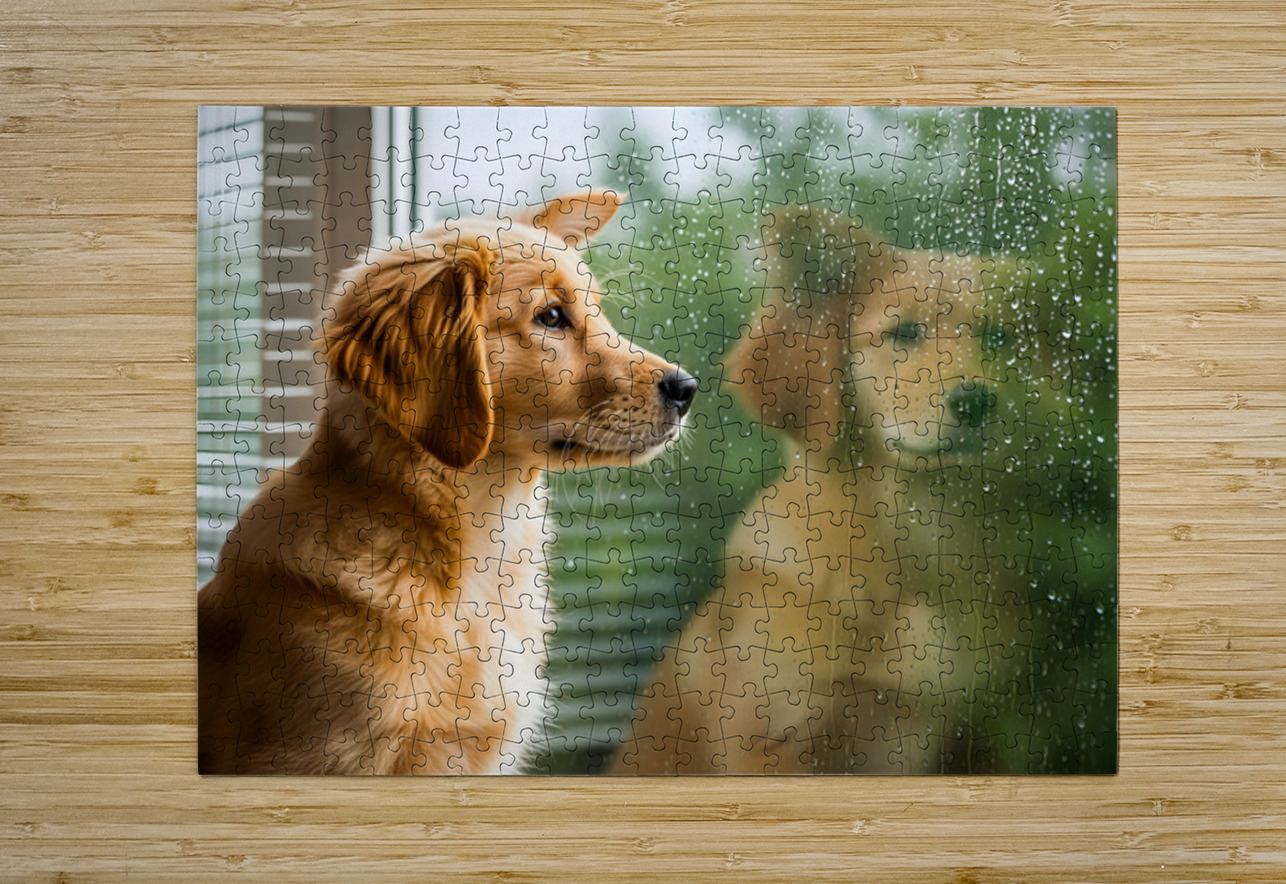 Peaceful Golden Retriever Puppy Rests By Rainy Window Puppy Prints Puzzle printing