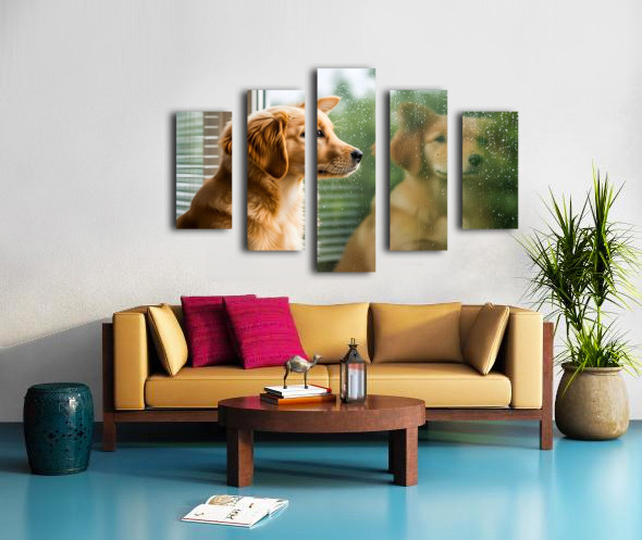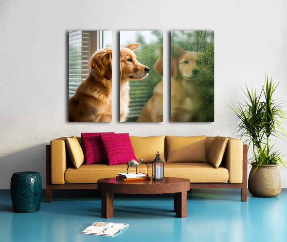 Peaceful Golden Retriever Puppy Rests By Rainy Window Canvas print