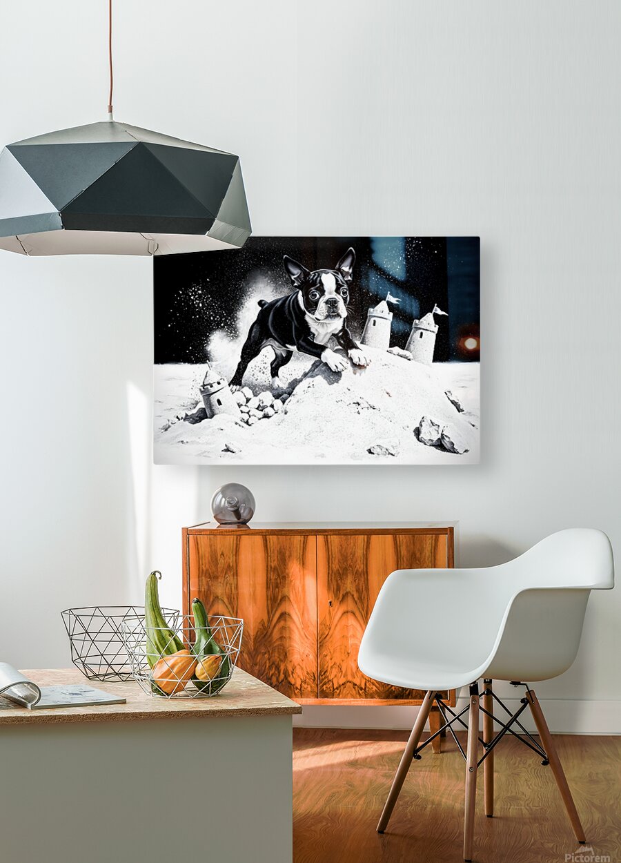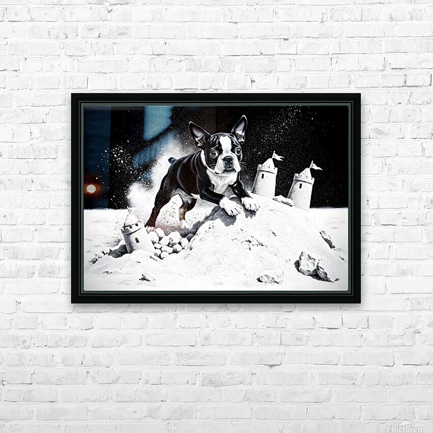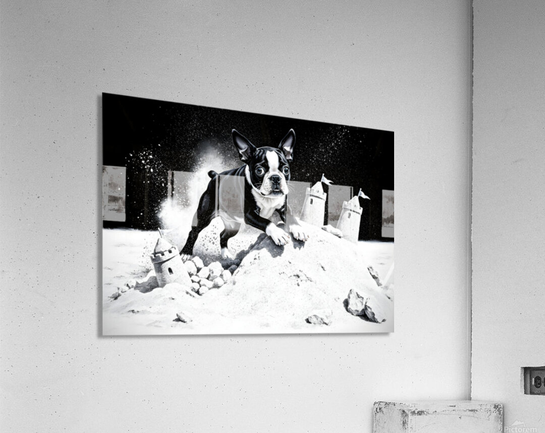 Get this artwork "Boston Terrier Puppy Happy Despite Sandy Mess" in a framed print.