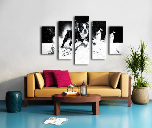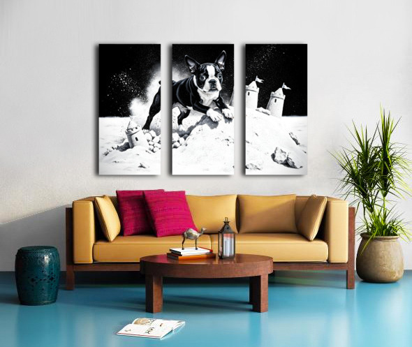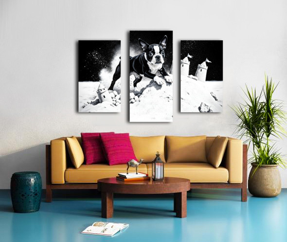 Boston Terrier Puppy Happy Despite Sandy Mess Canvas print