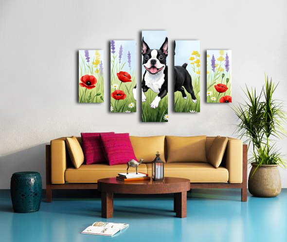 Boston Terrier Puppy Discovers Wildflower Meadow Canvas print