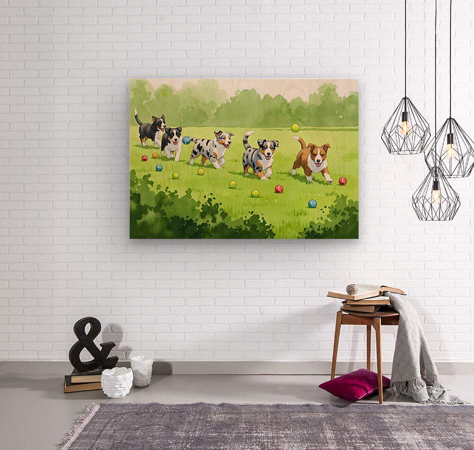 ABOUT THIS ARTWORK: AUSTRALIAN SHEPHERD PUPPY SPOTS TENNIS BALL