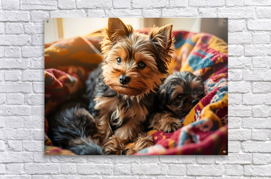 ABOUT THIS ARTWORK: YORKSHIRE TERRIER PUPPY SLEEPS PEACEFULLY IN BLANKETS