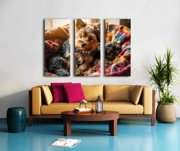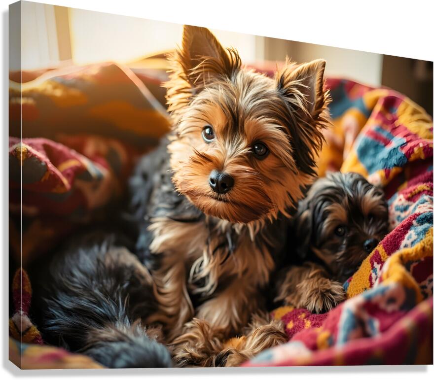 Yorkshire Terrier Puppy Sleeps Peacefully In Blankets Canvas print