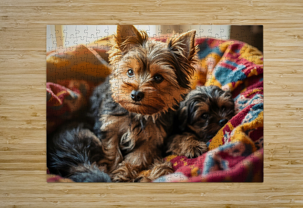 Yorkshire Terrier Puppy Sleeps Peacefully In Blankets Puppy Prints Puzzle printing