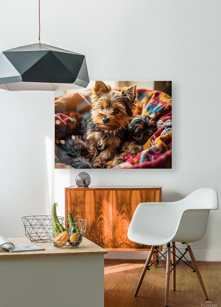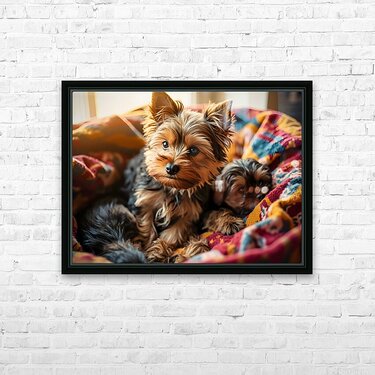 Get this artwork "Yorkshire Terrier Puppy Sleeps Peacefully In Blankets" in a framed print.