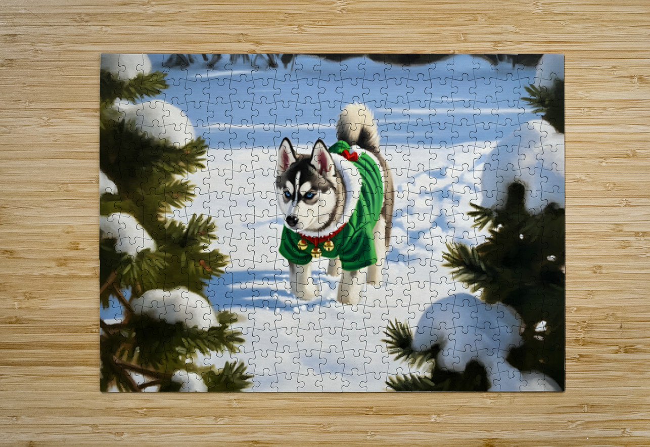 Siberian Husky Puppy In Red Holiday Costume Indoors Puppy Prints Puzzle printing