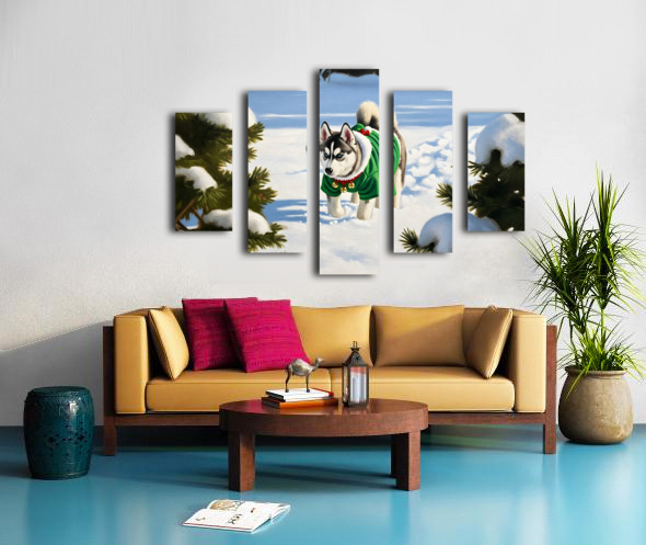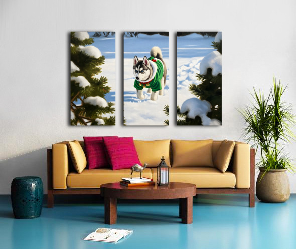 Siberian Husky Puppy In Red Holiday Costume Indoors Canvas print