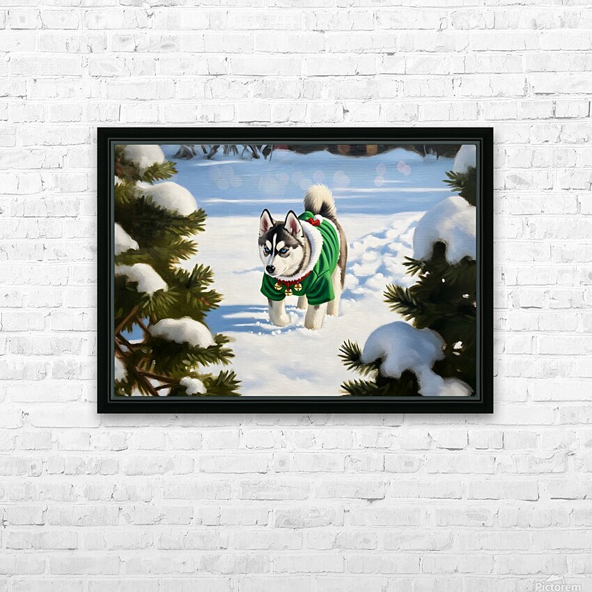 Siberian Husky Puppy In Red Holiday Costume Indoors Picture Frame Printing