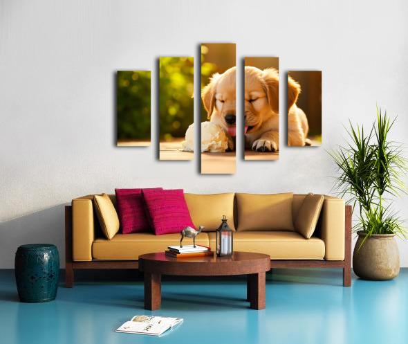 Golden Retriever Puppy Discovers Ice Cream Treat Canvas print