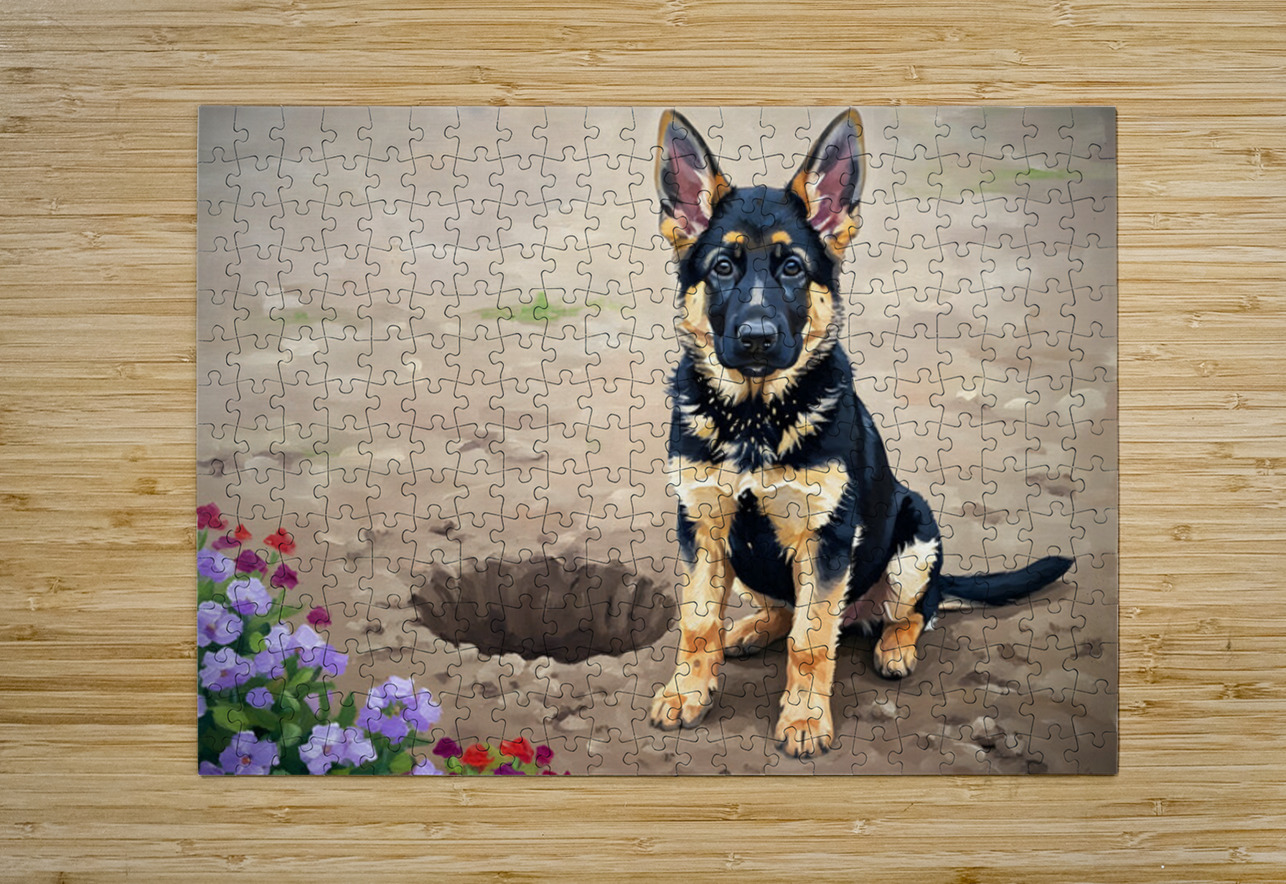 Proud German Shepherd Puppy Shows Off Digging Achievement Puppy Prints Puzzle printing