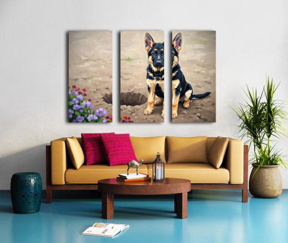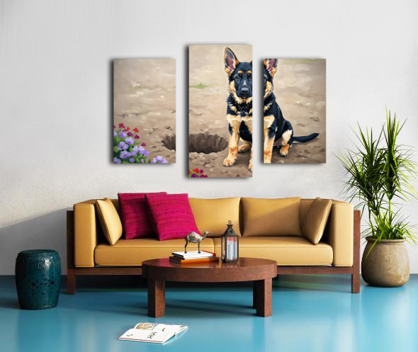 Proud German Shepherd Puppy Shows Off Digging Achievement Canvas print