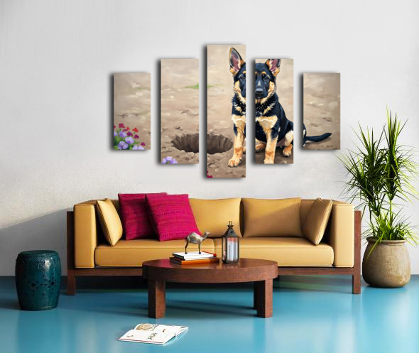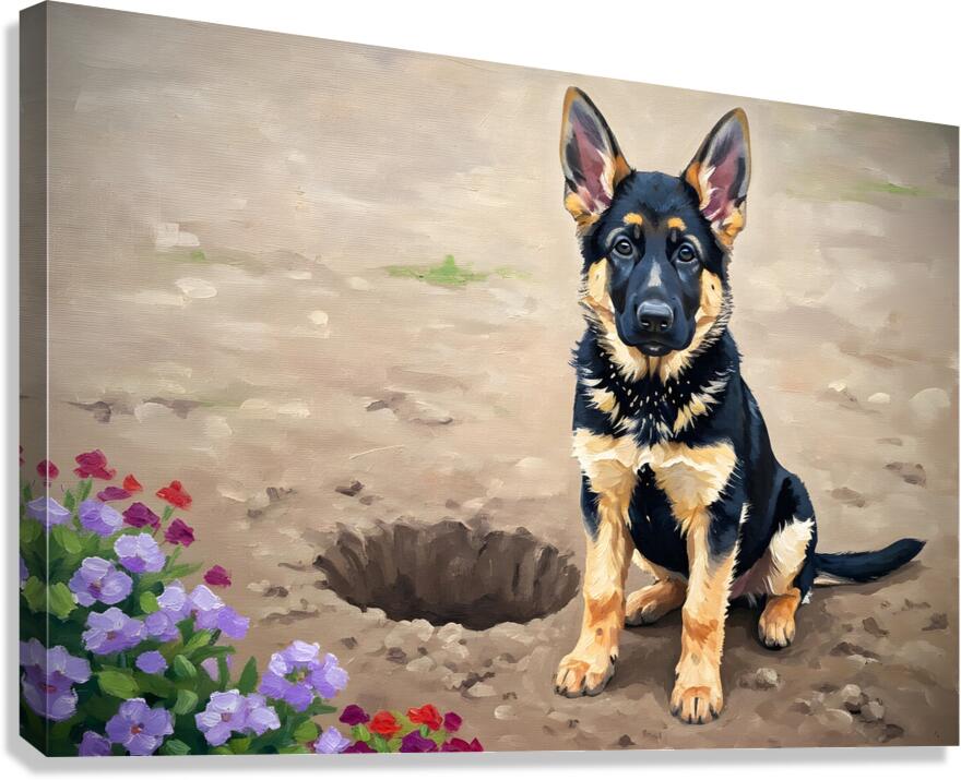 Proud German Shepherd Puppy Shows Off Digging Achievement Canvas print
