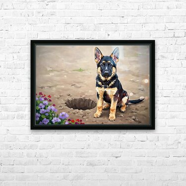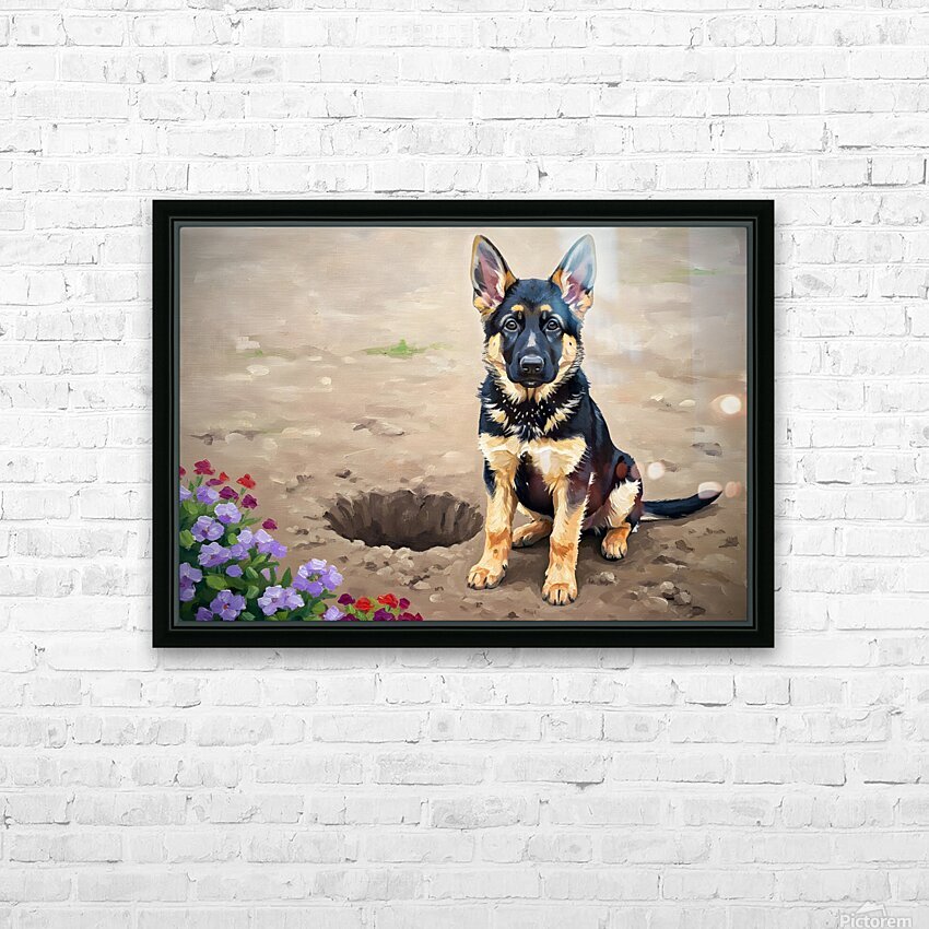Proud German Shepherd Puppy Shows Off Digging Achievement Picture Frame Printing