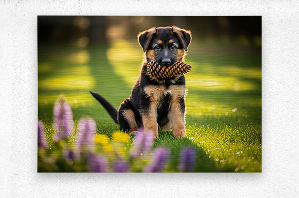 Get this artwork "German Shepherd Puppy Returns Pinecone For Another Round" in a framed print.