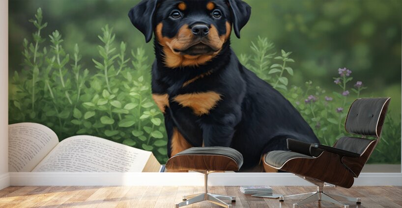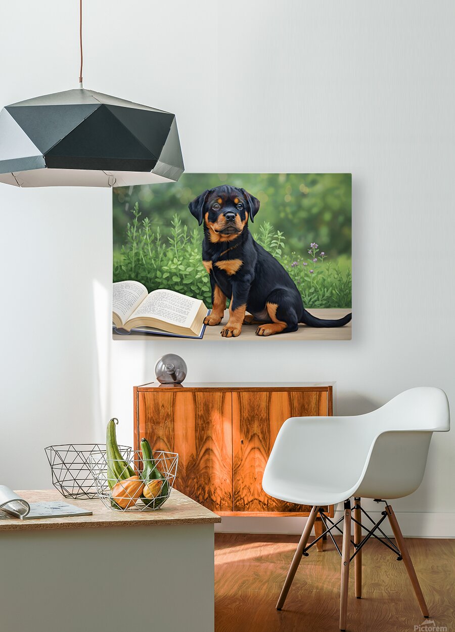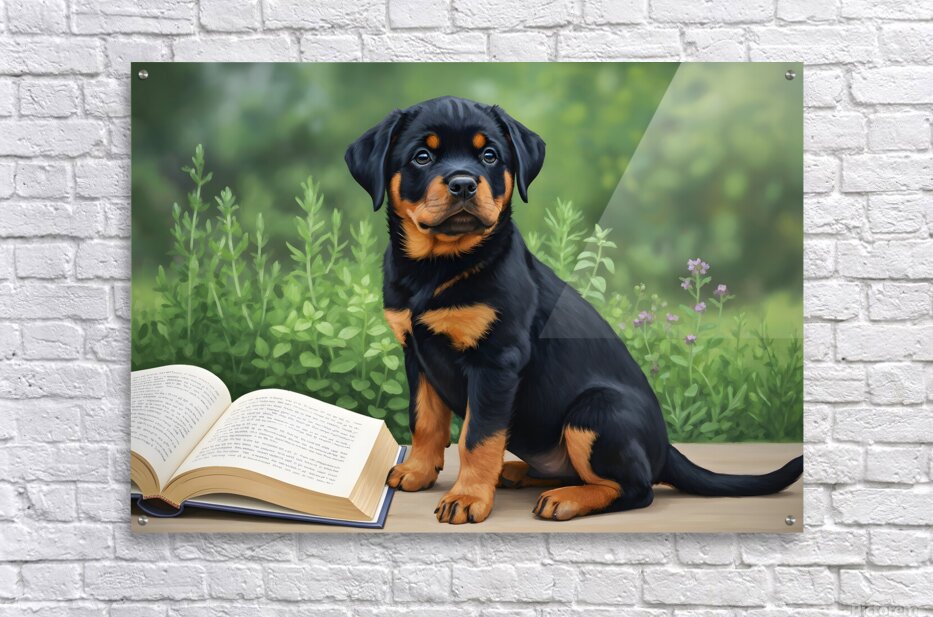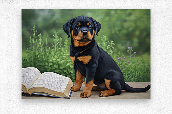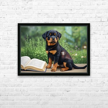 Get this artwork "Determined Rottweiler Puppy Ready To Resume Reading" in a framed print.