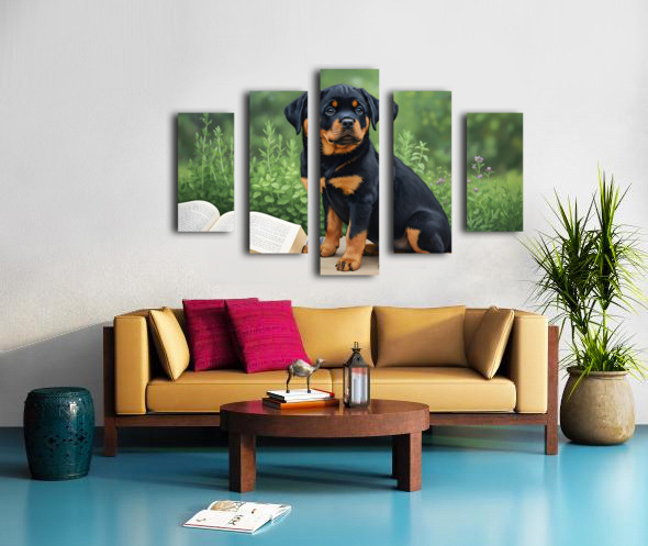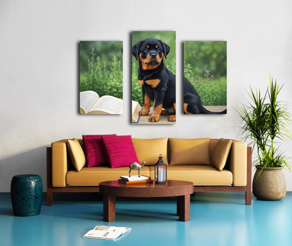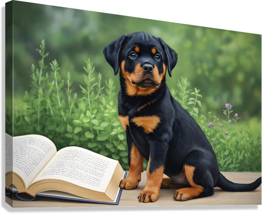 Determined Rottweiler Puppy Ready To Resume Reading Canvas print