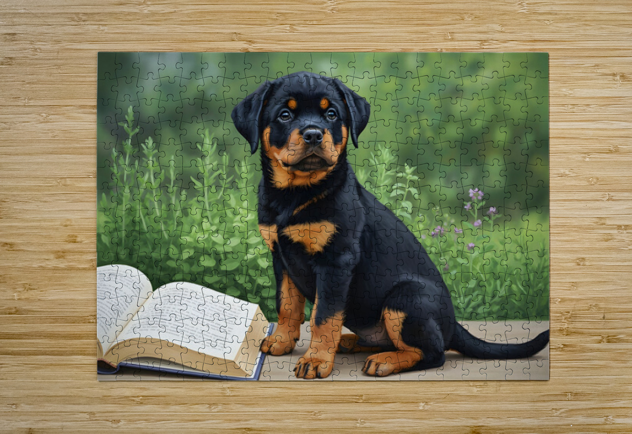 Determined Rottweiler Puppy Ready To Resume Reading Puppy Prints Puzzle printing