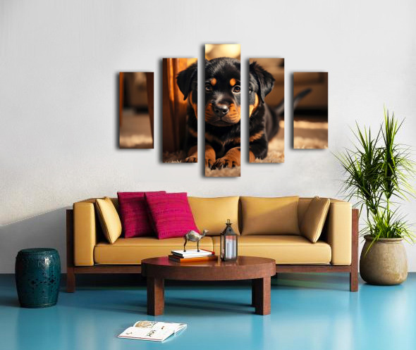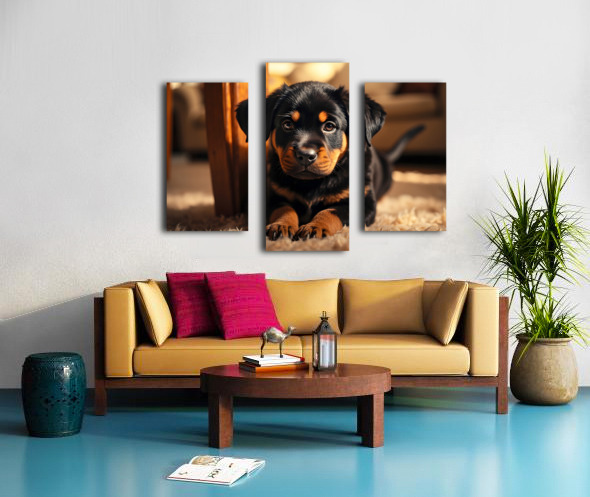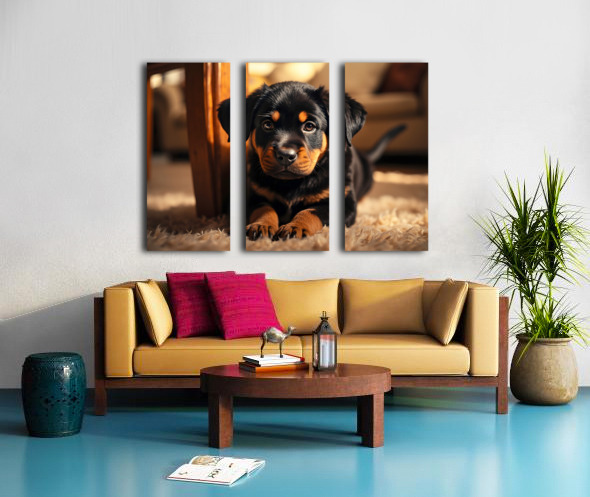 Rottweiler Puppy Joins The Family Fun Canvas print