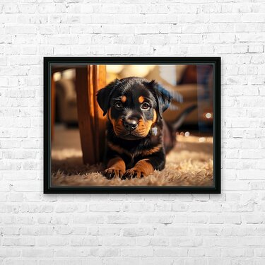 Rottweiler Puppy Joins The Family Fun Picture Frame Printing