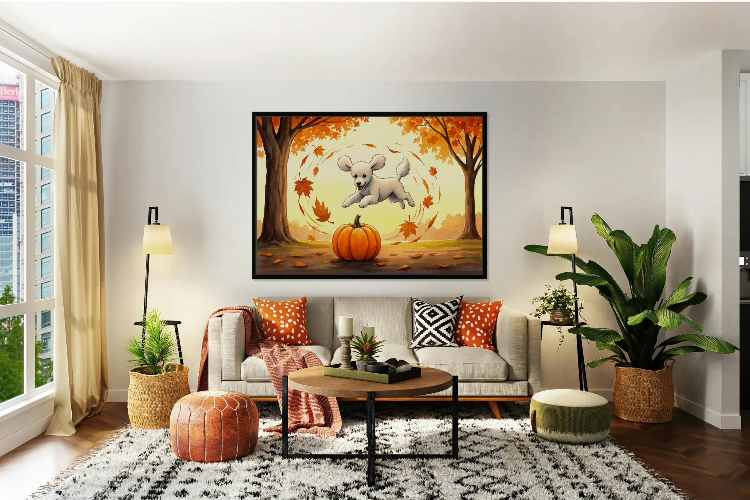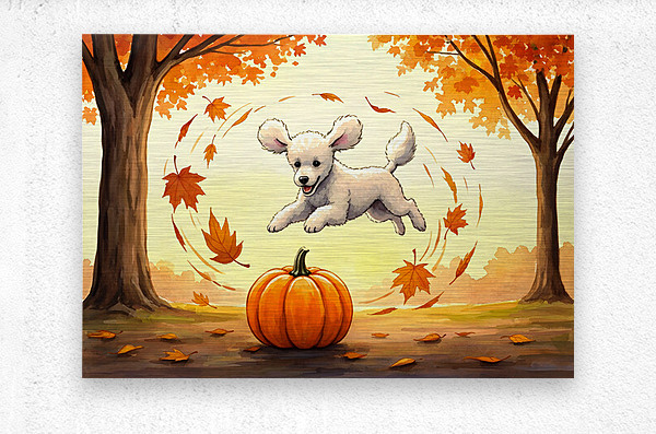 ABOUT THIS ARTWORK: POODLE PUPPY RESTS AFTER PUMPKIN PATCH ADVENTURE