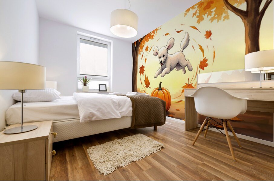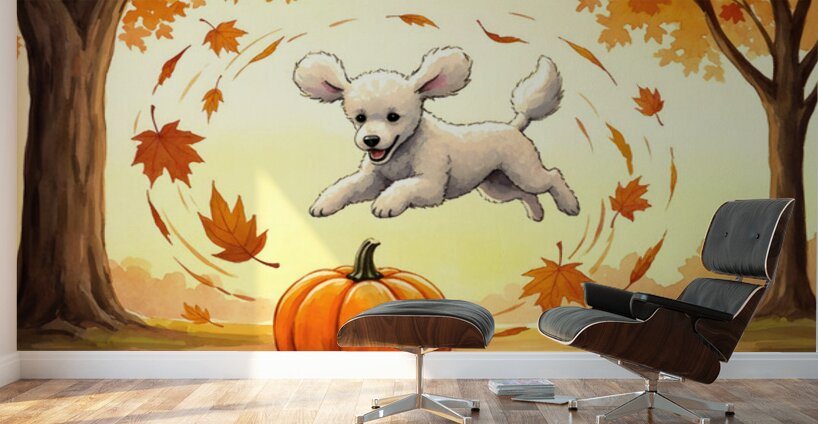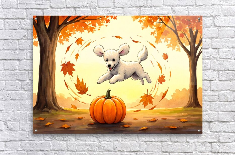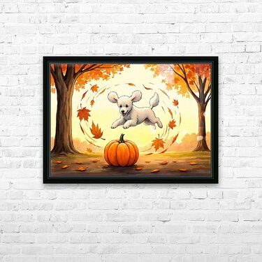 Get this artwork "Poodle Puppy Rests After Pumpkin Patch Adventure" in a framed print.