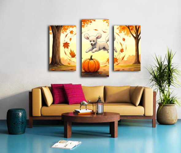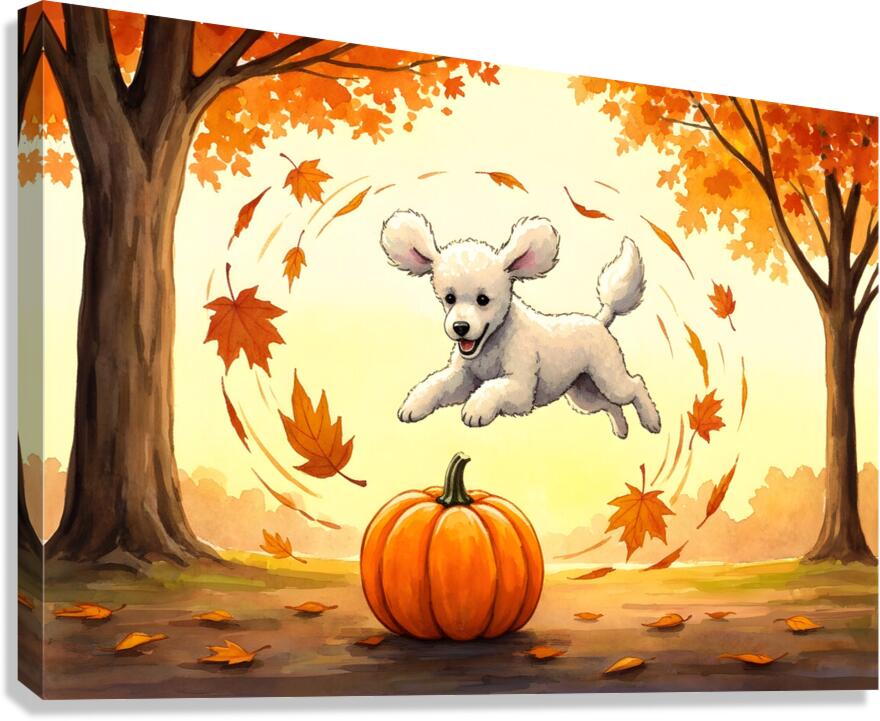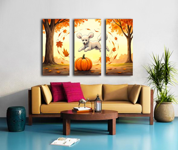 Poodle Puppy Rests After Pumpkin Patch Adventure Canvas print