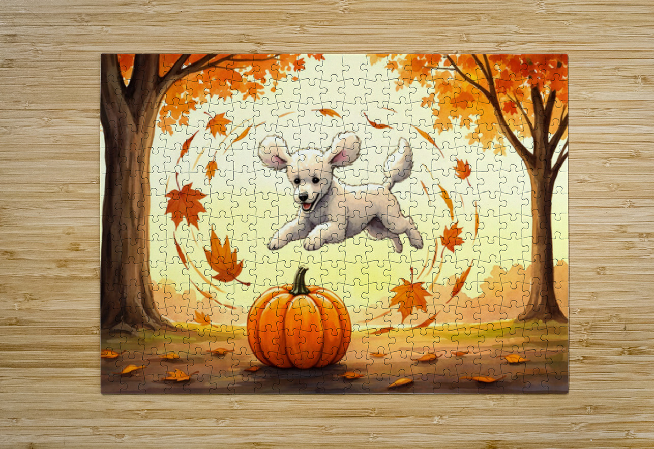 Poodle Puppy Rests After Pumpkin Patch Adventure Puppy Prints Puzzle printing