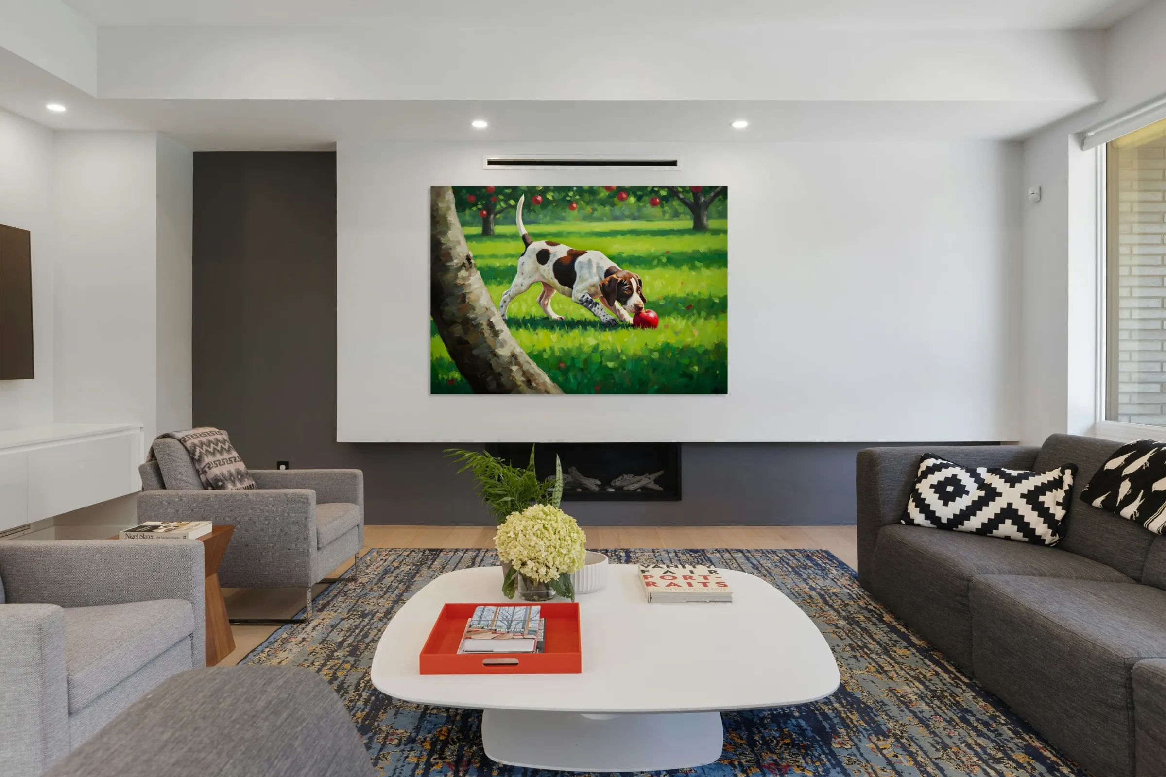 ABOUT THIS ARTWORK: GERMAN SHORTHAIRED POINTER PUPPY DISCOVERS APPLE ORCHARD