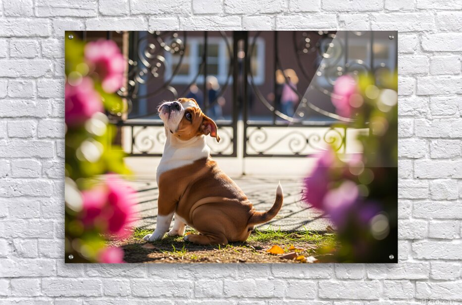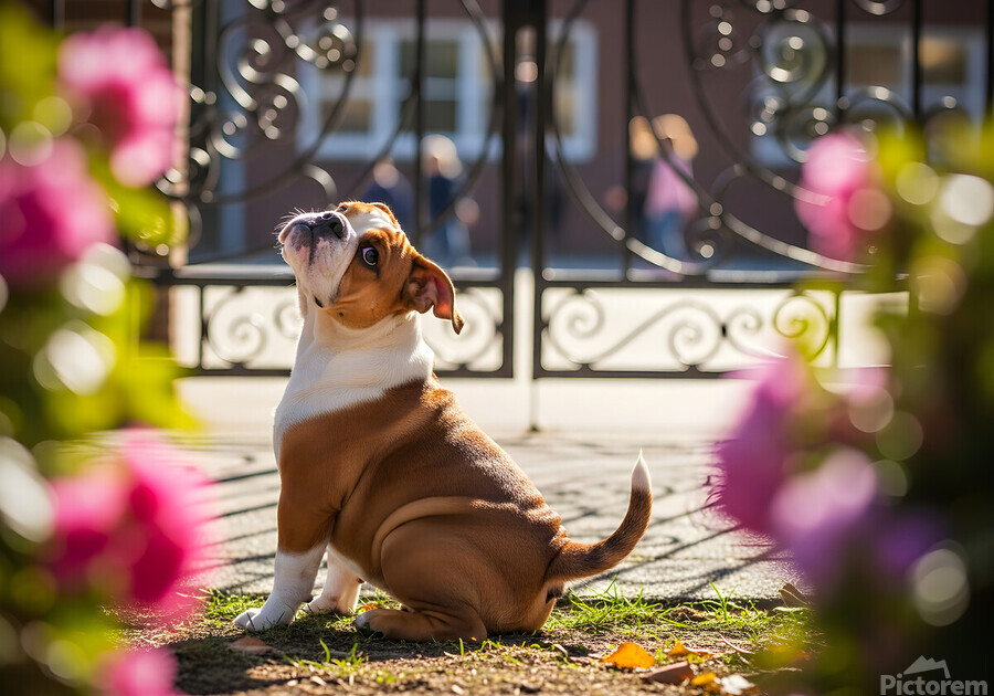 Bulldog Puppy Waits By School Gate Picture Frame Printing