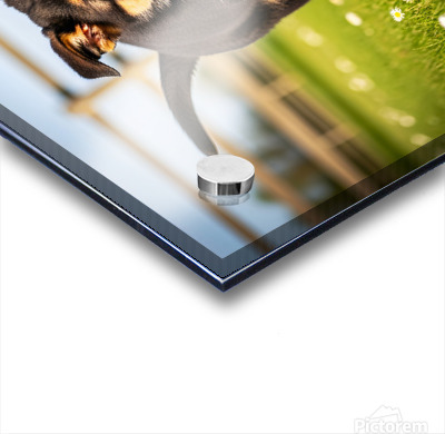 German Shepherd Puppy Watches Pinecone Soar Through Air Picture Frame Printing