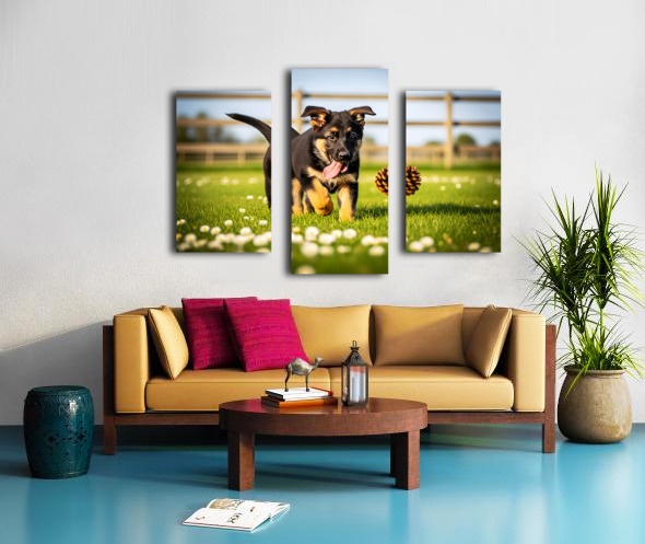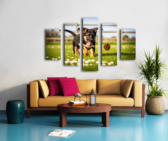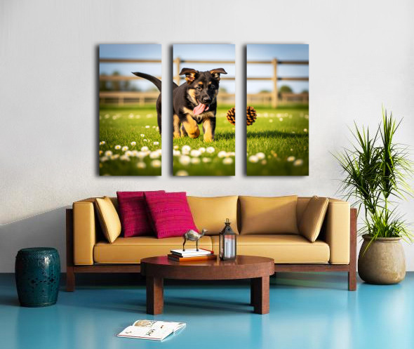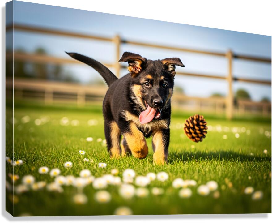 German Shepherd Puppy Watches Pinecone Soar Through Air Canvas print