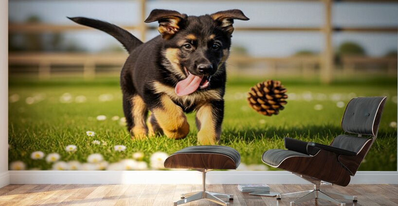 German Shepherd Puppy Watches Pinecone Soar Through Air Puppy Prints Puzzle printing