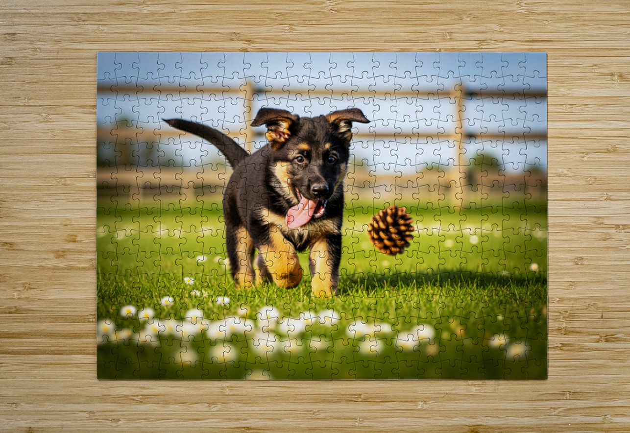 German Shepherd Puppy Watches Pinecone Soar Through Air Puppy Prints Puzzle
