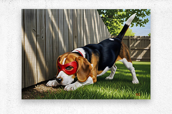 ABOUT THIS ARTWORK: BEAGLE PUPPY DISCOVERS HIS SUPERHERO MASK